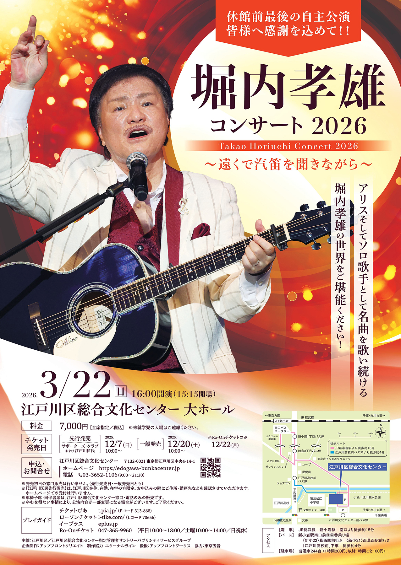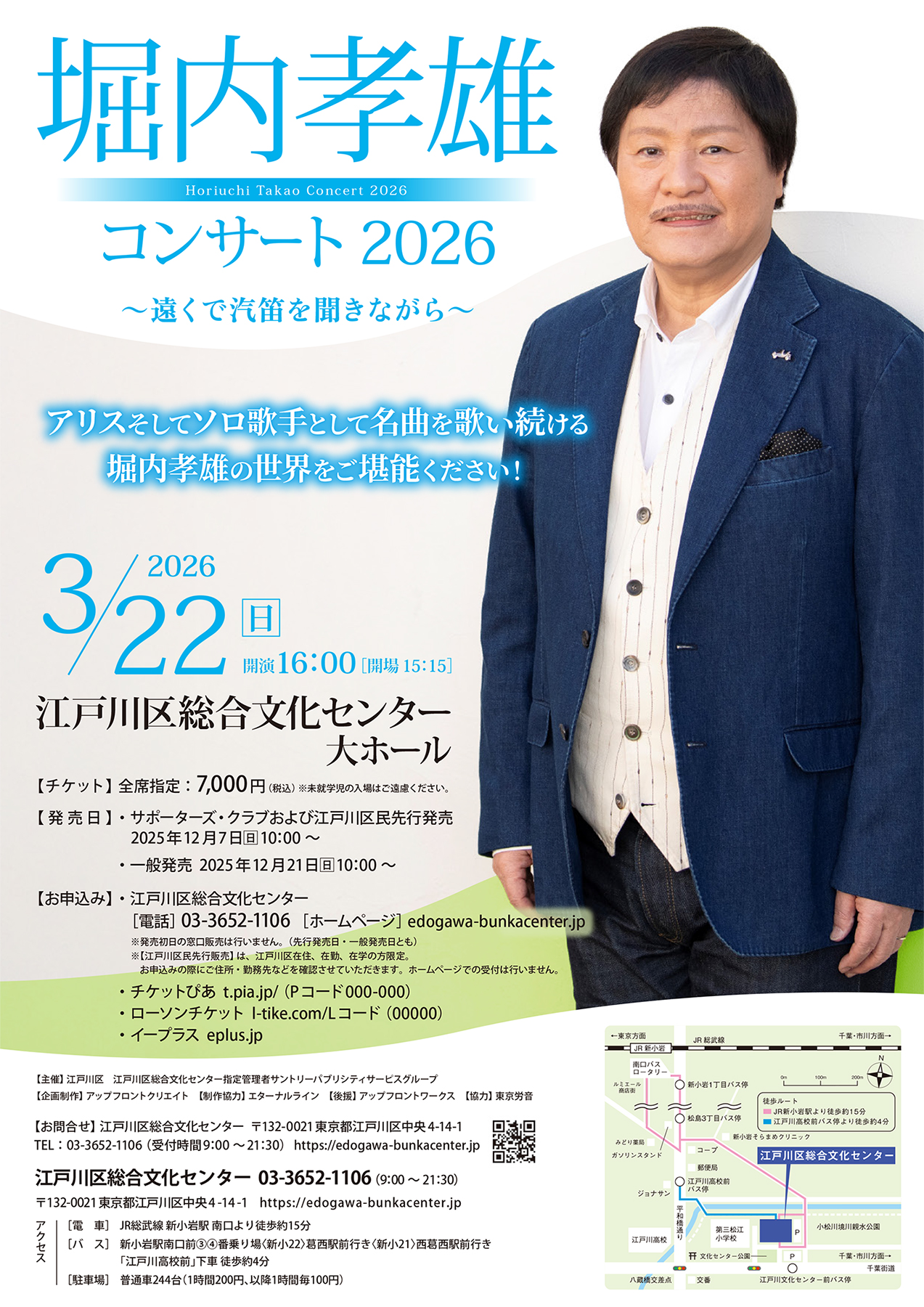【公演名】堀内孝雄コンサート2026 ~遠くで汽笛を聞きながら~
