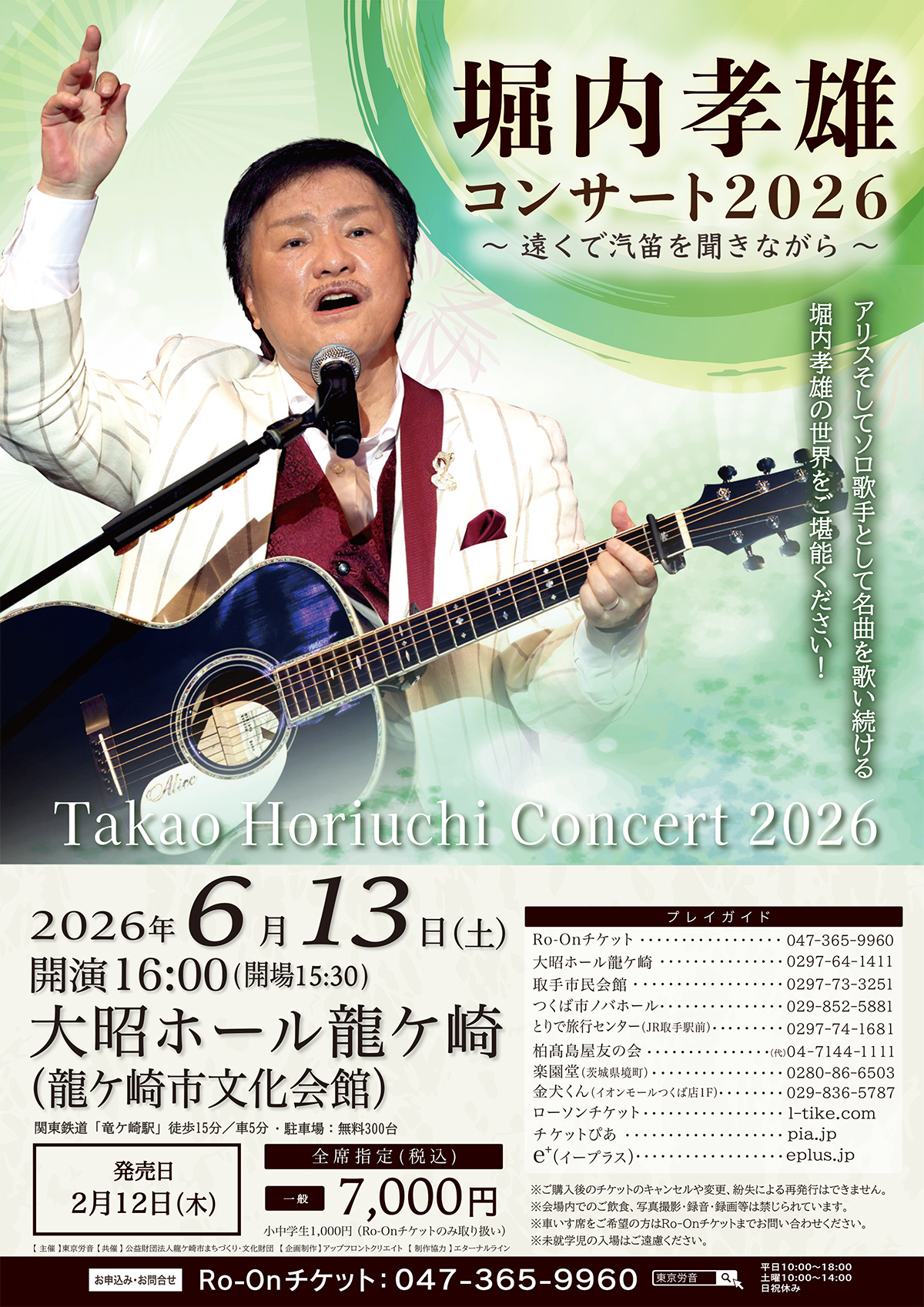 コンサート「堀内孝雄コンサート2026~遠くで汽笛を聞きながら~ (茨城)」開催!